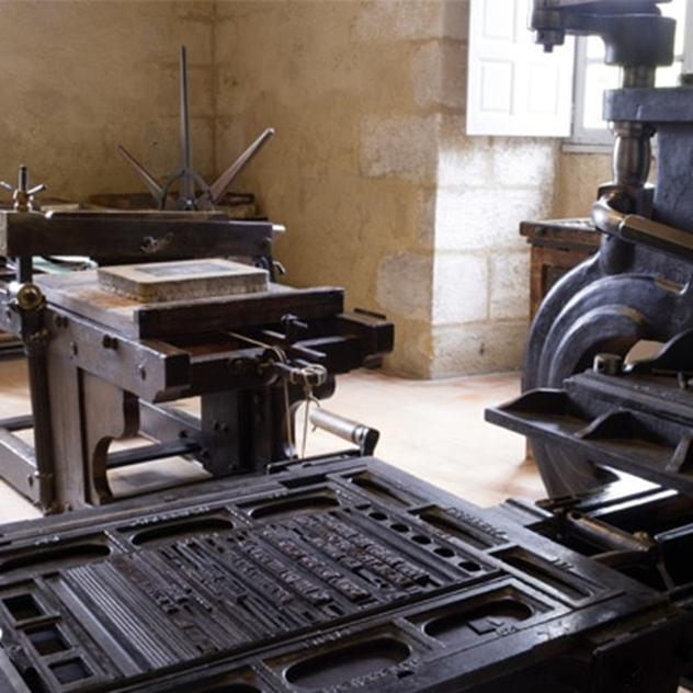 “[...] Angoulême’de hâlâ tahta makineler kullanılıyordu. Dilimiz, bugün artık kullanılmayan ‘matbaayı inletmek’ deyimini de bu makinelere borçludur. Geri kalmış matbaacılık orada hâlâ, makinacılardan birinin harflere sürttüğü mürekkebe bulanmış meşin yuvarlaklarla iş görüyordu. Üzerine kâğıt tabakasının yaslandığı harflerle dolu formanın yerleştirildiği hareketli tabla taştan yapılmıştı ve ona verilen ‘mermer’ adını hak ediyordu.”